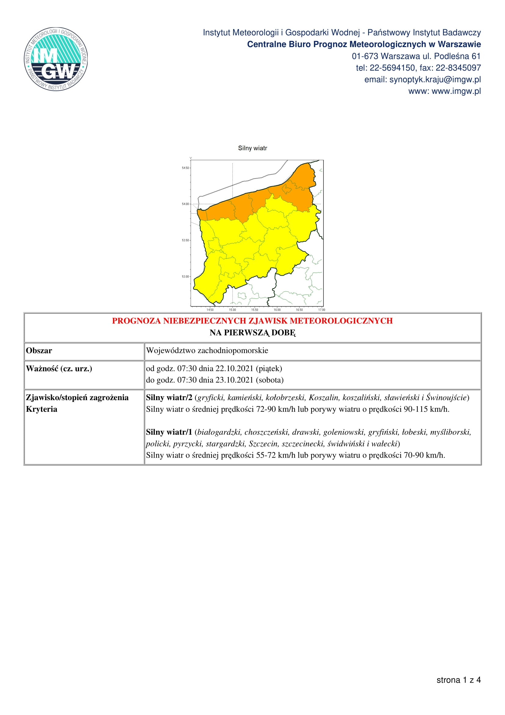 Wojewódzkie Centrum Zarządzania Kryzysowego w Zachodniopomorskim Urzędzie Wojewódzkim w Szczecinie prognozuje możliwość wystąpienia silnego wiatru. Prosimy zapoznać się z komunikatem.